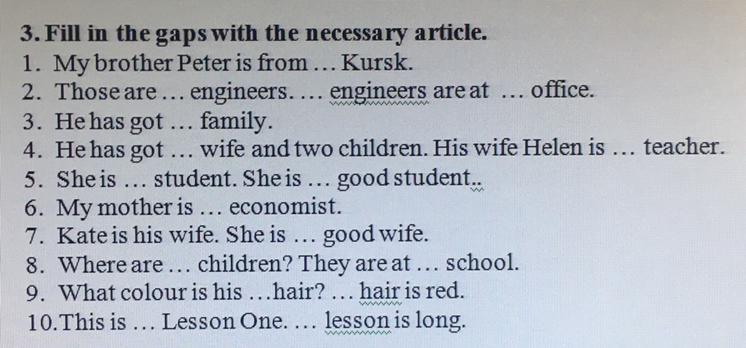 10. -, the (потому что слово повторяется)