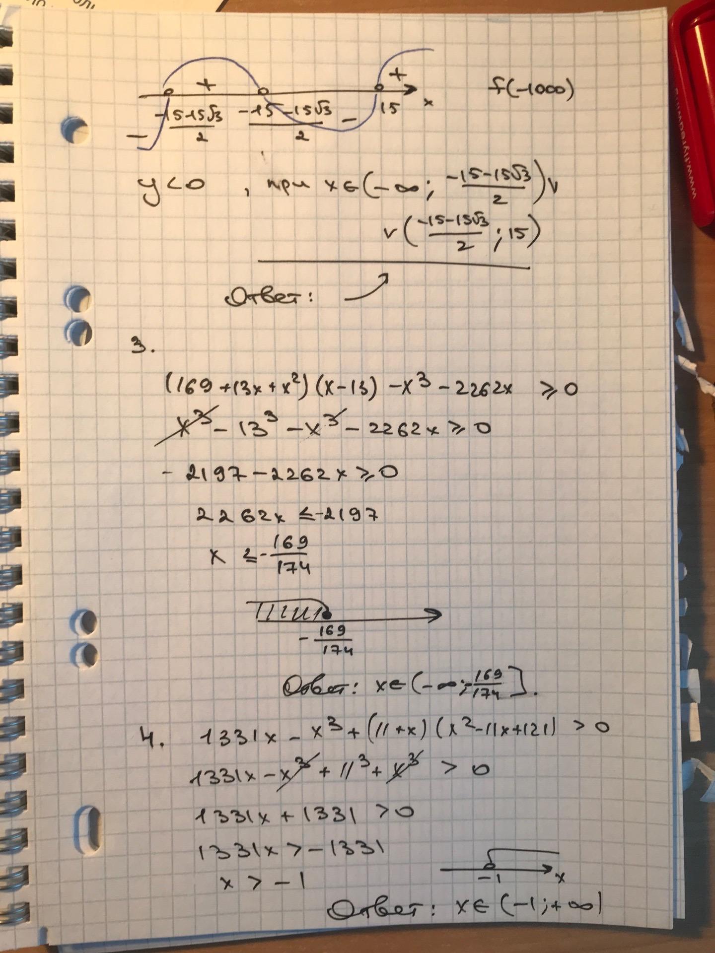 3) (169 + 13x +x²)(x - 13) - x³- 2262x больше либо равно 0;