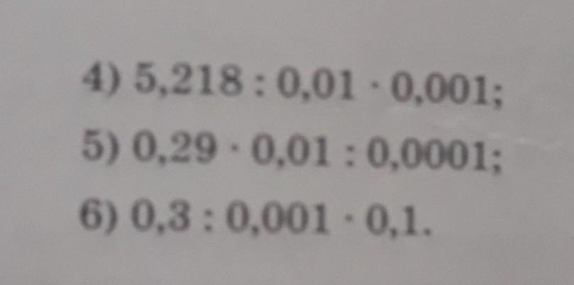 4) 5,218 : 0,01 * 0,001 = 521 800
