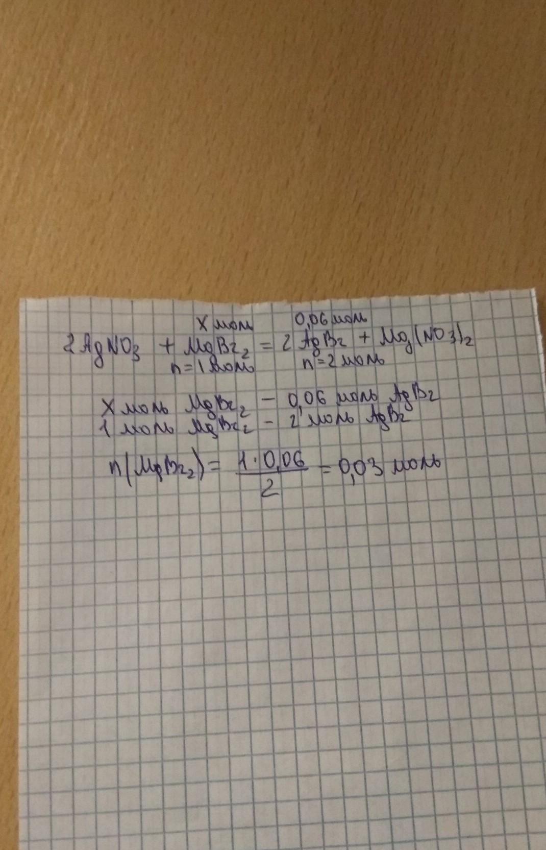 Вычисли, какое количество вещества бромида магния должно прореагировать, чтобы образовалось 0,06 моль бромида серебра.