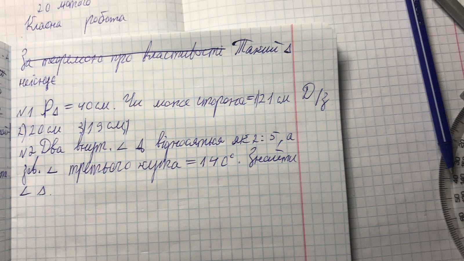 1) Якщо периметр трикутника 40 см, то одна з сторін має бути менше половини периметра, бо інакше трикутник не може існувати. Отже, правильна відповідь 3) 19 см.