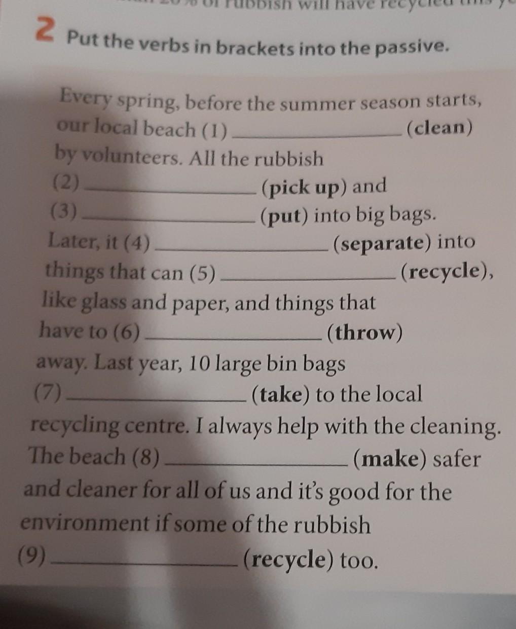 is cleaned, is picked up, put, it is seperated, can be recycled, have to be thrown away, were taken, was made, will be recycled