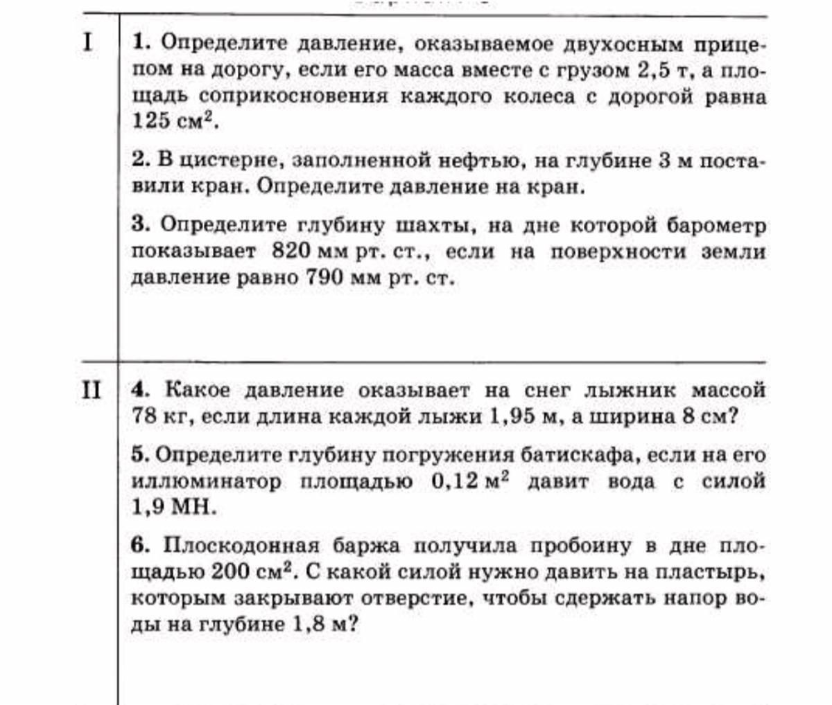 1. P= F/4S=mg/4S= 2500×10/4×0.0125=500 кПа