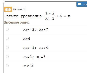 displaystyle tt frac{1-x}{x-1}+5=x : : : : : | : xne1\frac{-(x-1)}{x-1}+5=x\-1+5=x\4=x\x=4
