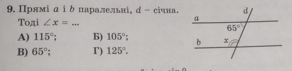 a паралеліна b d-січна кут 1=65° кут 2=x°