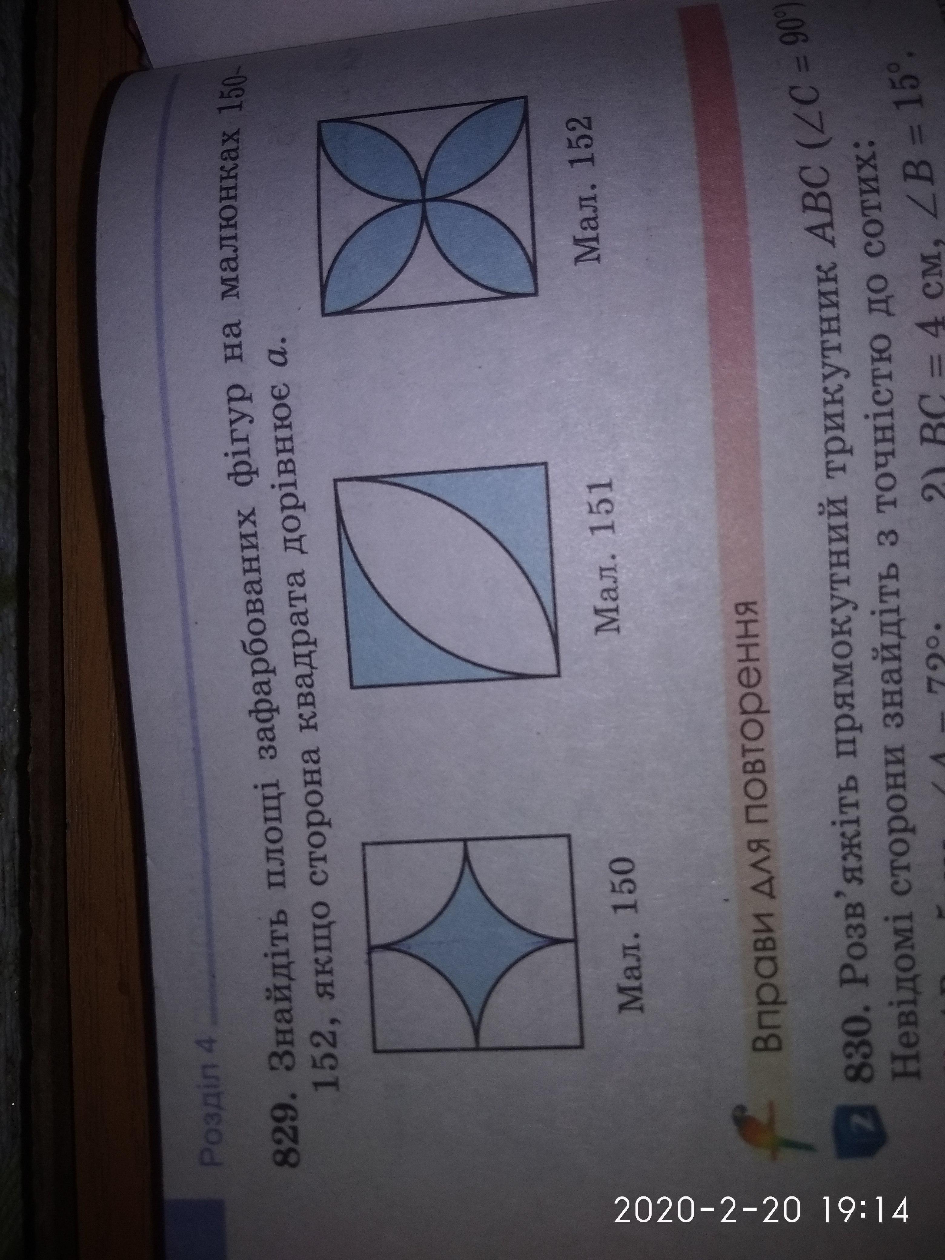 1) Из квадрата вычтем четыре четверти (то есть целую окружность) радиусом a/2