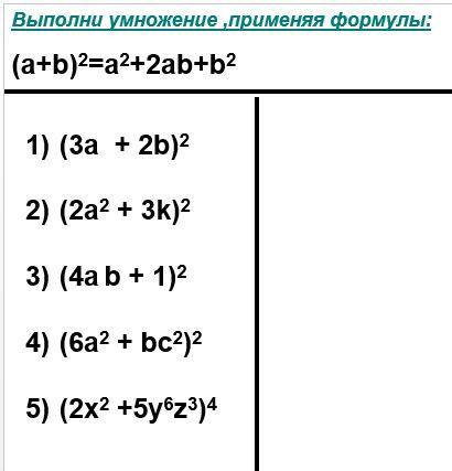 1) (3а + 2b)² = 9a² + 12ab + 4b²