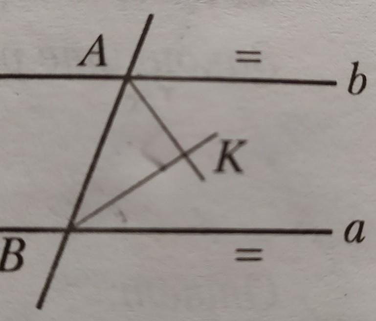 Короче если А параллельна Б и АКБ=90°, при этом БАК=КАб, выходит, что БАК+КБА=90°. Тогда аБК+АКб=90° и по равенству уже данному выходит что углы при вершине Б равны