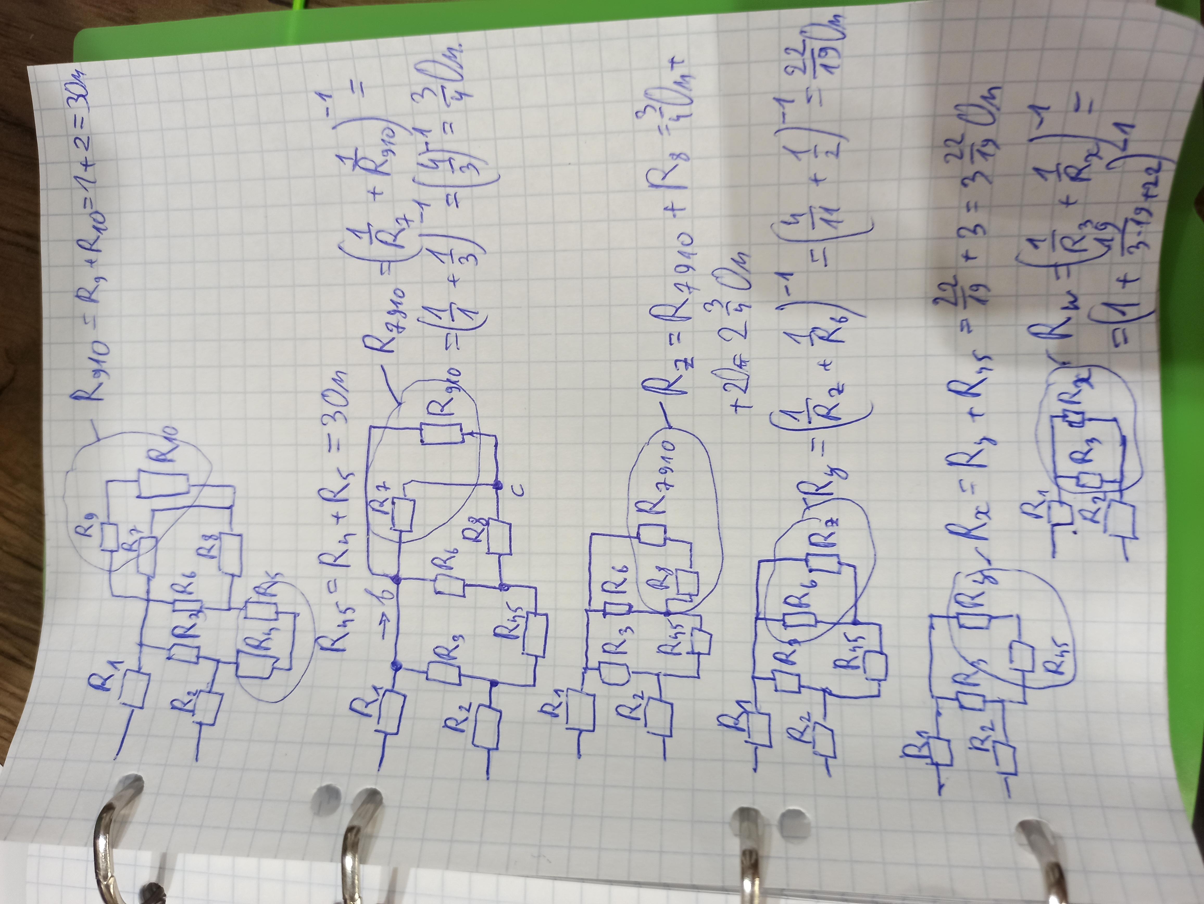 Последовательное упрощение схемы в направлении обхода тока, показаны на рисунке буквами