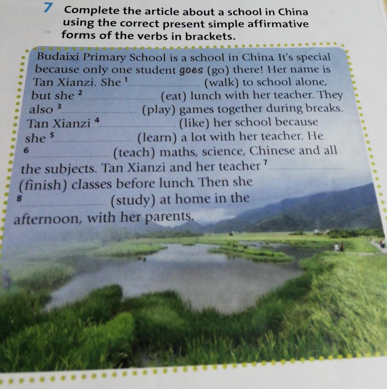 Ответ:She walks, eats, they play, Tan Xianzi likes, she learns, he teaches, Tan and her teacher finish, she studyes
