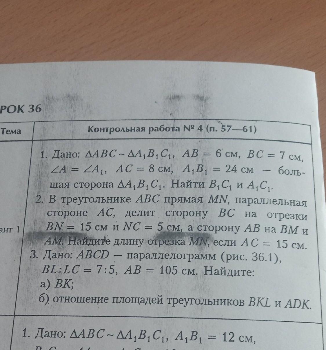 1 Так как треугольники равны, то их стороны и углы тоже. Тогда B1C1=BC=7 см A1C1=АС=8 см