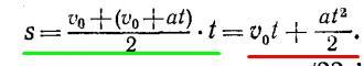 Мне малопонятно, как эту формулу отмеченная зеленым (путь при равноускоренном движении) изменили до другой (красная), почему нельзя было оставить все как есть??