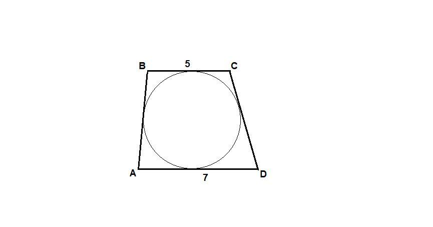 Если четырехугольник описан около окружности, то суммы противолежащих сторон равны: