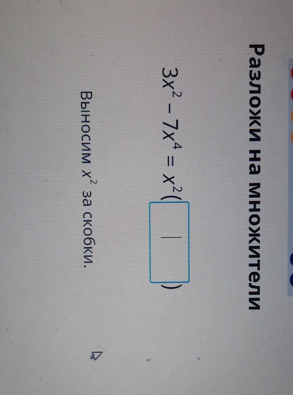 3 {x}^{2}  - 7 {x}^{4}  =  {x}^{2} (3 - 7 {x}^{2} )
