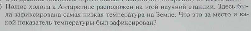 Самая низкая температура на Земле была зарегистрирована в Восточной Антарктиде, на Антарктической станции «Восток». 21 июля 1983 года температура опустилась до рекордных 89.2°С.