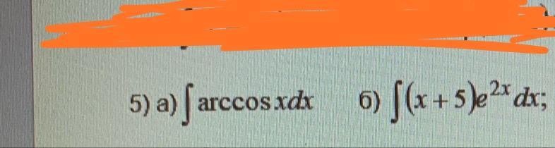 Вычислить интегралы : а) ∫ arccos(x)dx ; б) ∫ (x +5)e²ˣ dx