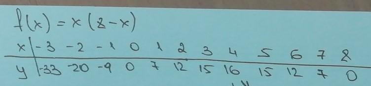 Таблица значений и график на фото
