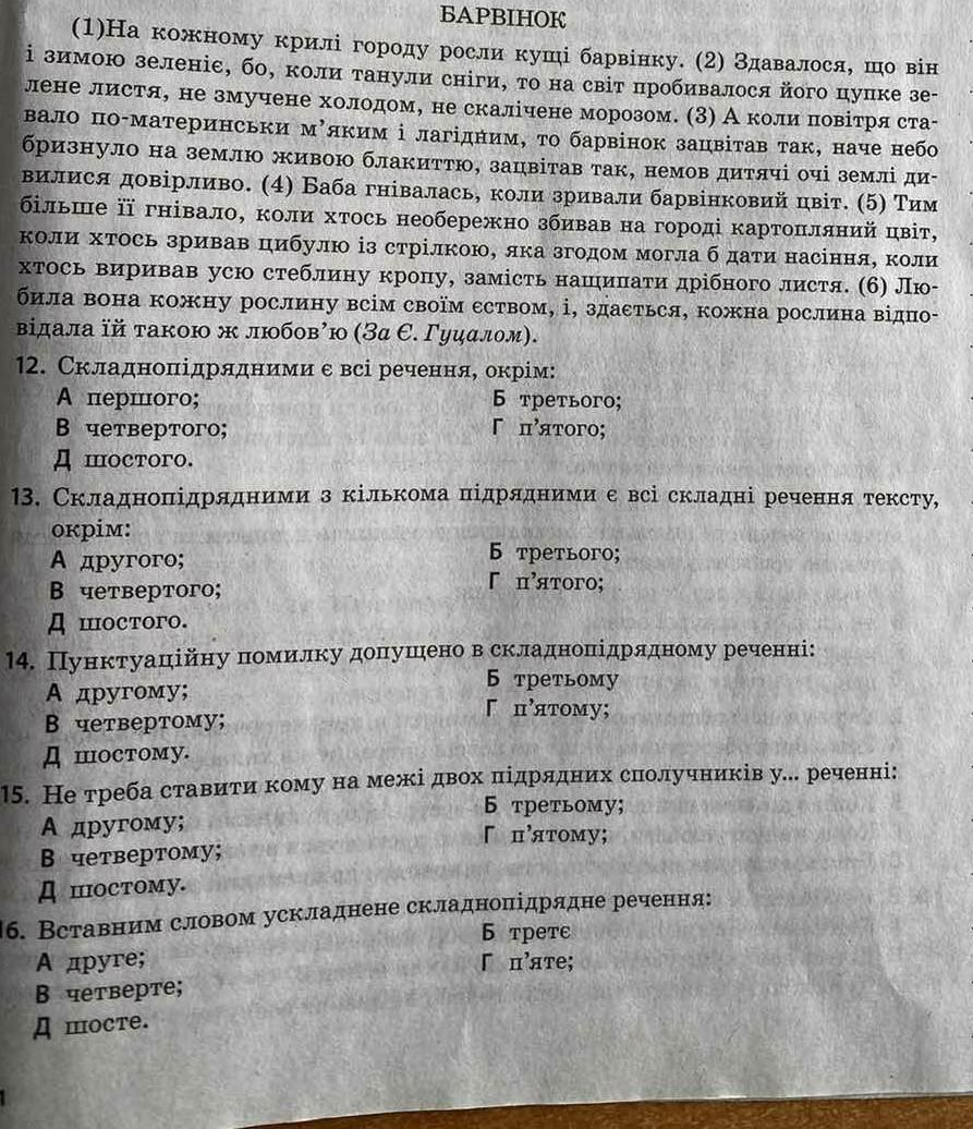 16. **Вставним словом ускладнене СКЛАДНОСУРЯДНЕ речення – шосте (здається).