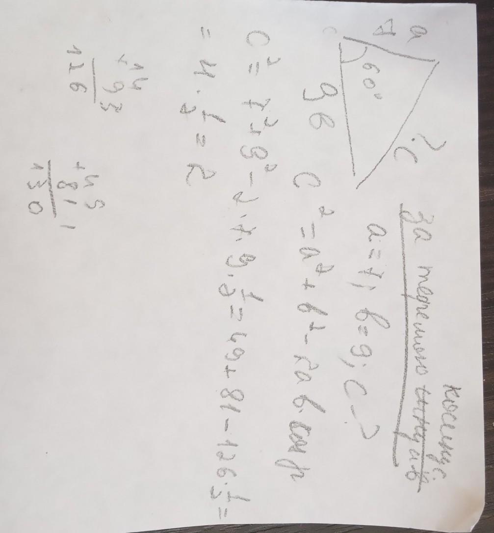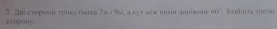 за теоремою косинусів тому, що є дві сторони і кут між ними. Якщо було б щось інше, то була б теорема синусів