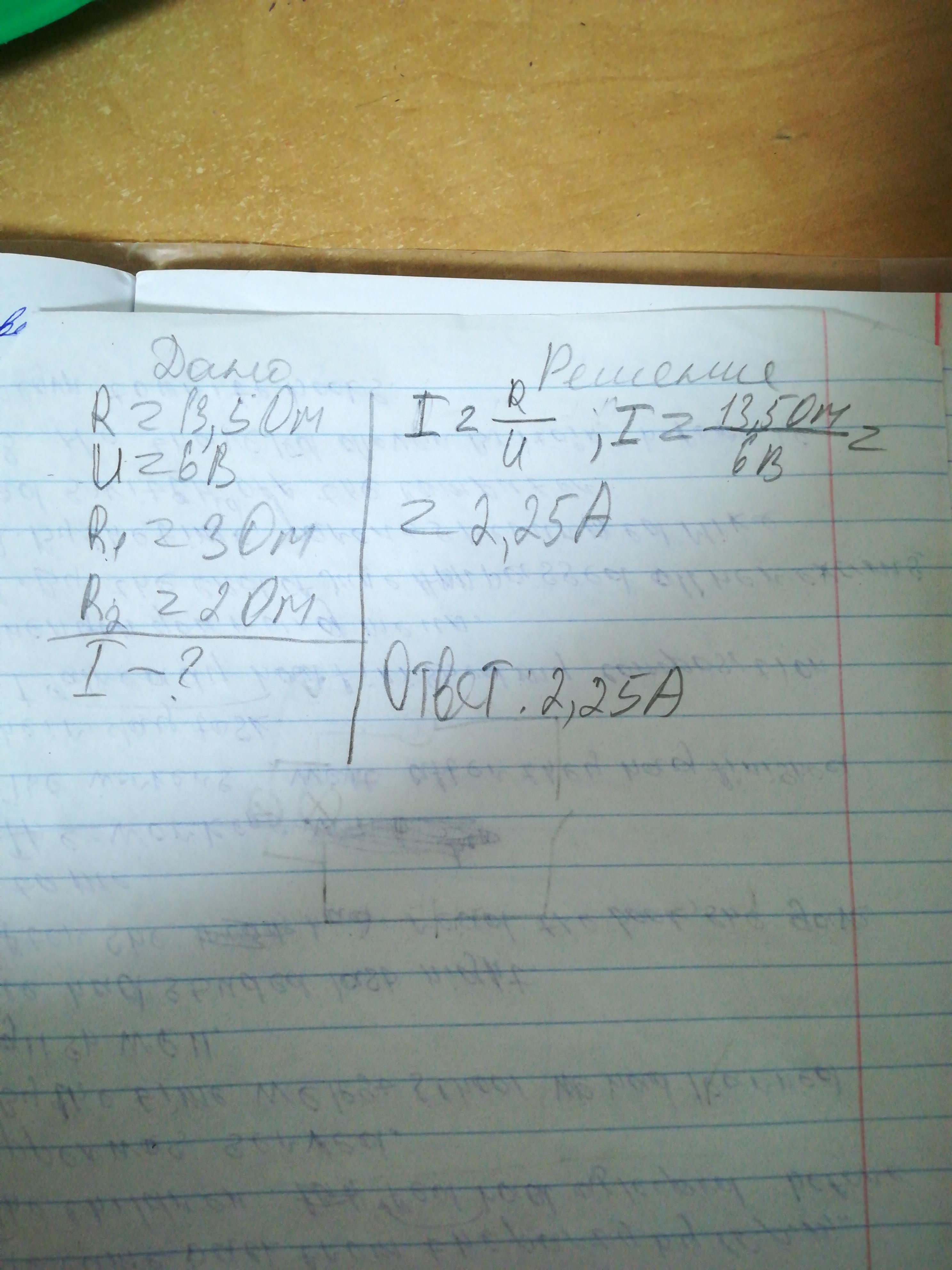 Электрическая цепь состоит из источника тока-батареи аккумуляторов, создающей в цепи напряжение 6В, лампочки от карманного фонаря сопротивлением 13,5 Ом, двух спиралей сопротивлением 3 и 2 Ом, ключа и соединительных проводов. Все детали цепи соединены последовательно. Начертите схему цепи. Определите силу тока в цепи, напряжение на концах каждого из потребителей тока.