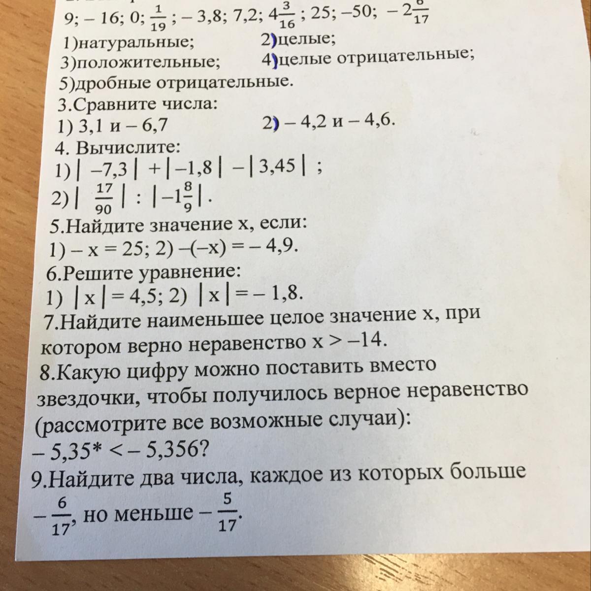 Для этого нужно увеличить знаменатель этих дробей на 3. а также и числители тогда получится (-6*3)/(17*3)=-18/51(-5*3)/(17,3)=-15/51таким образом мы получили новое неравенство - 18/51меньше хи меньше 15/51ответ - 16/51.-17/51