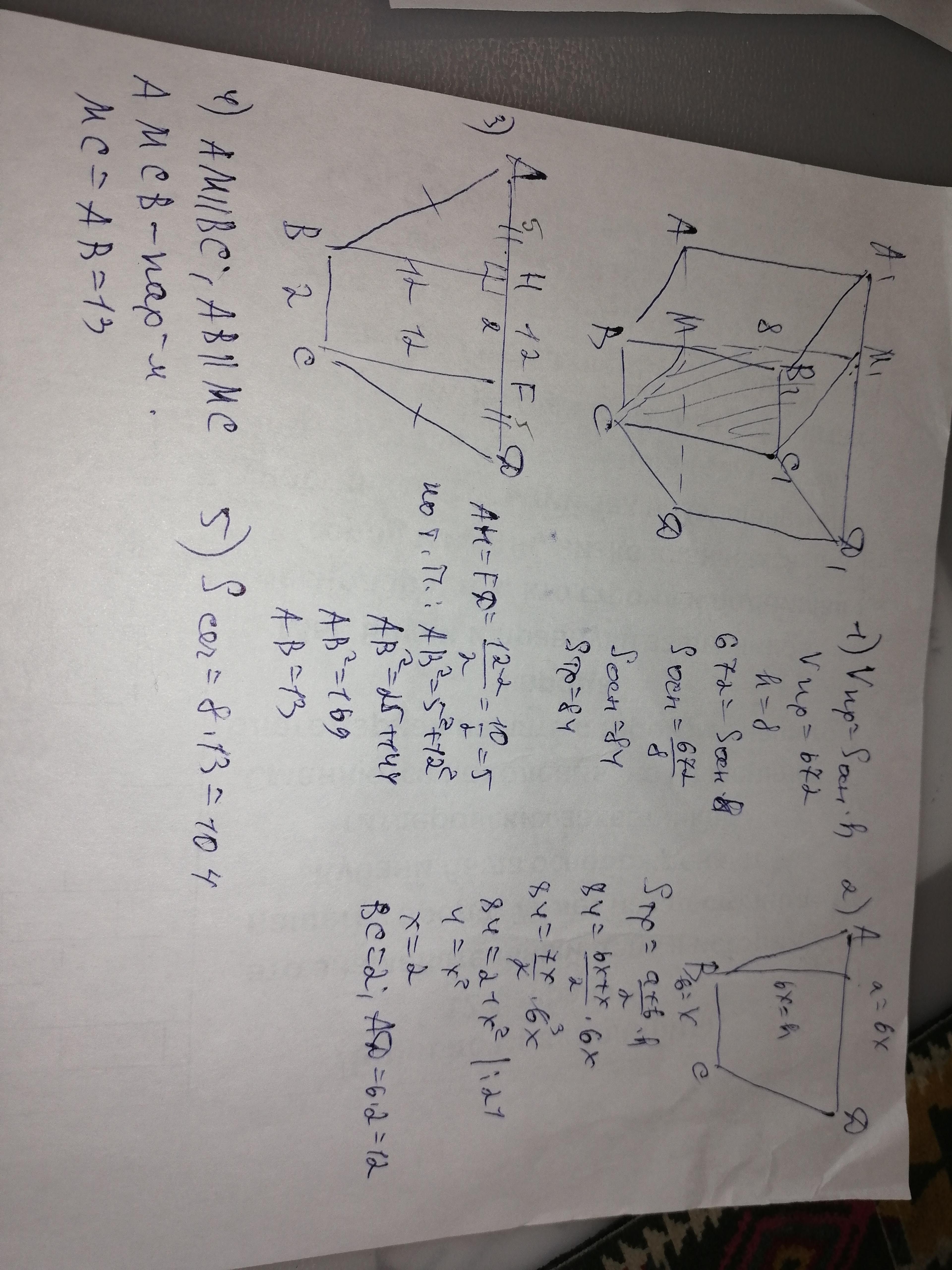Надо внести исправление: So = ((6x + x)/2)*H, или 84 = 3,5х*6х = 21х².