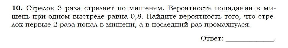 Поэтому искомая вероятность равна 0.8*0.8*0.2=0.128
