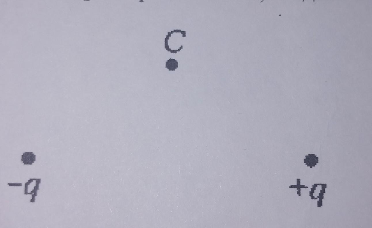 Вектор напряженности, созданной двумя зарядами в точке С, направлен: