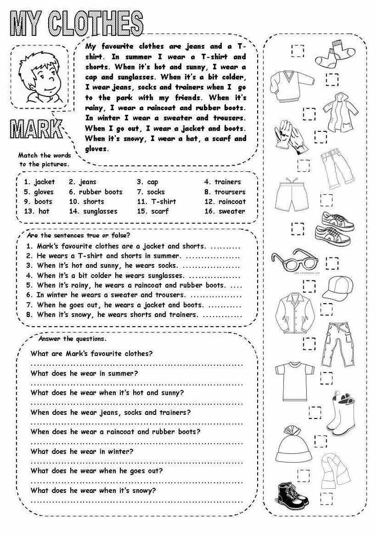 8. Mark wears a hat, a scarf and a gloves when it's snowy.
