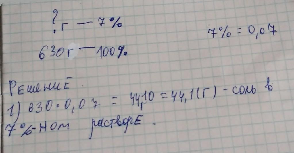 1) 630:0,07=630•100/7=900(г)---масса 7%-ного раствор