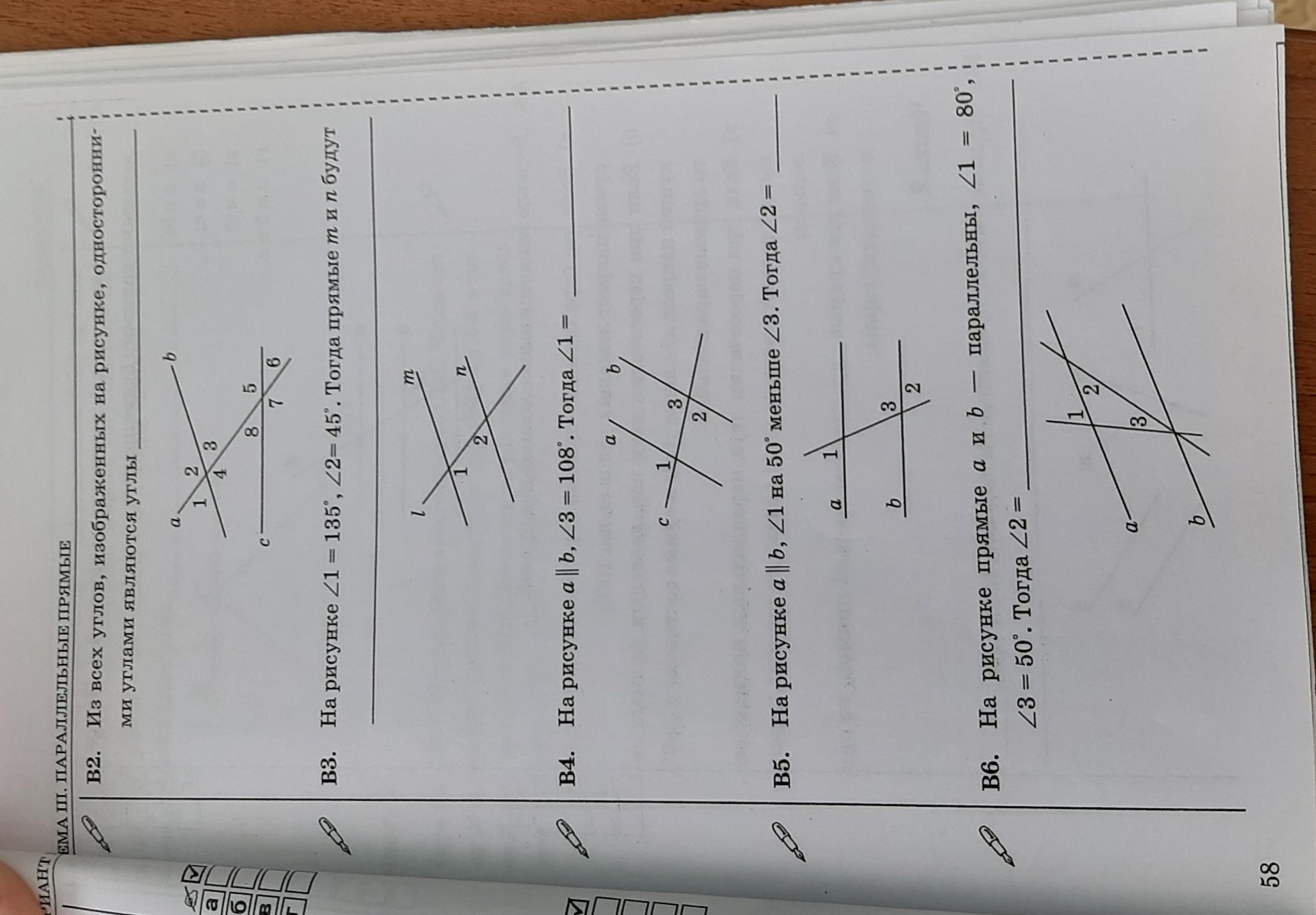 В3 прямые параллельны, т.к. сумма односторонних углов равна 180 гр. В4∠1 = 108, т.к. соответственные с ∠1.