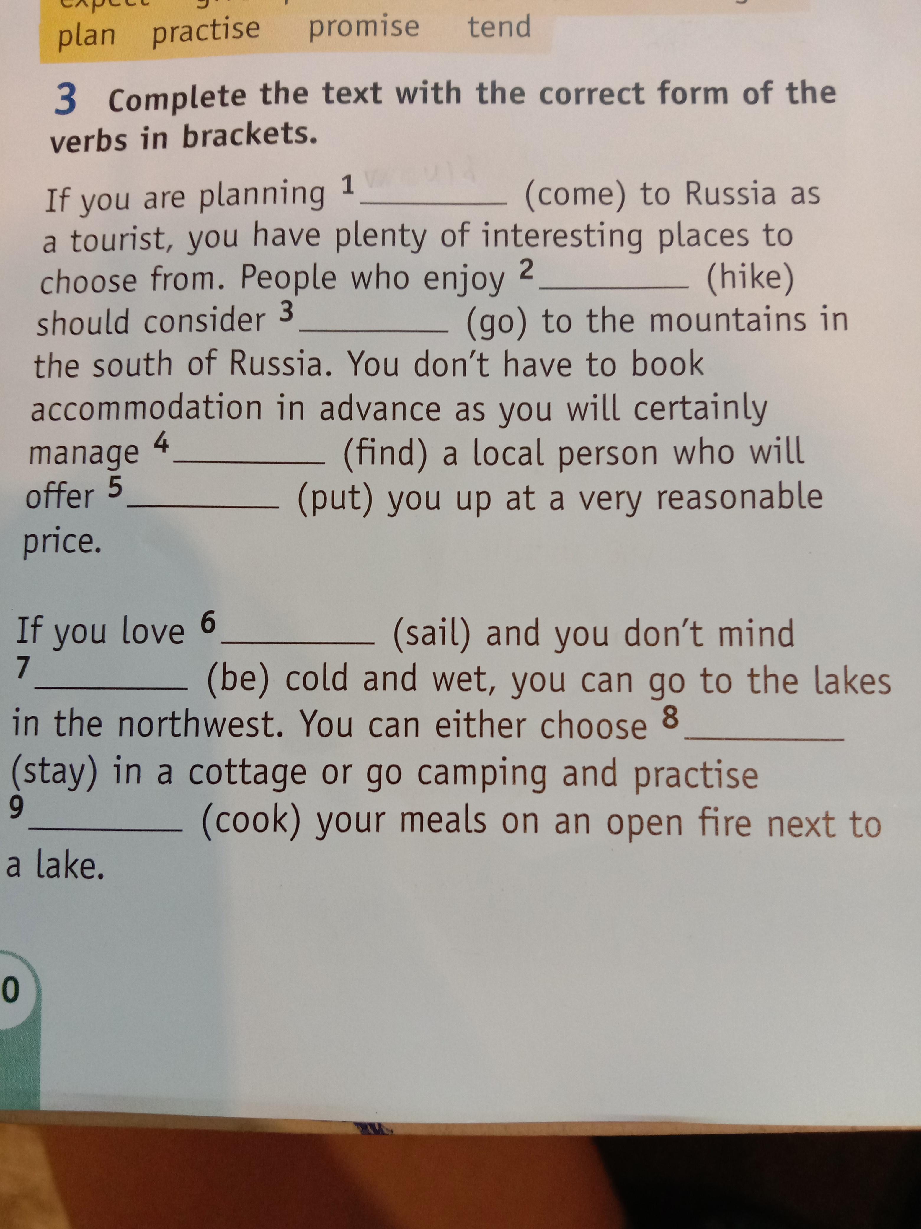 1)coming2)hikes3)going4)finds5)puts6)sailing7) be8)staying9)cooker10)bing11)staying12)pay13)stay14)meeting15)going. ну вот эти пропущенные слова