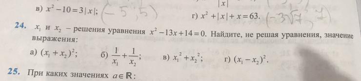 x1²+x2²= (x1+x2)²-2x1x2= 13²-2*14= 169-28= 141