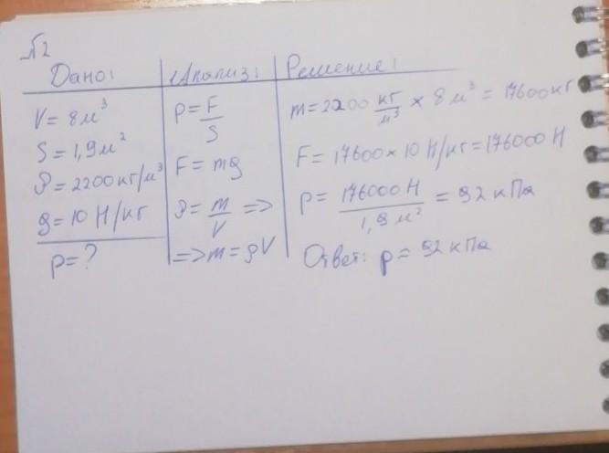 2.какое давление оказывает на грунт мраморная колонна объемом 8м3 если площадь ее основания 1,9м2 .плотность мрамора - 2200кг/м3