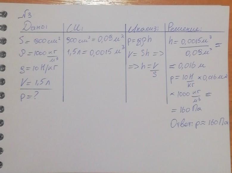 3.на сколько увеличиться давление на стол если в нее налить 1,5л воды? Площадь дна кастрюли 900см2 плотность воды 1000кг/м3 ответ в паскалях округлив до целого числа