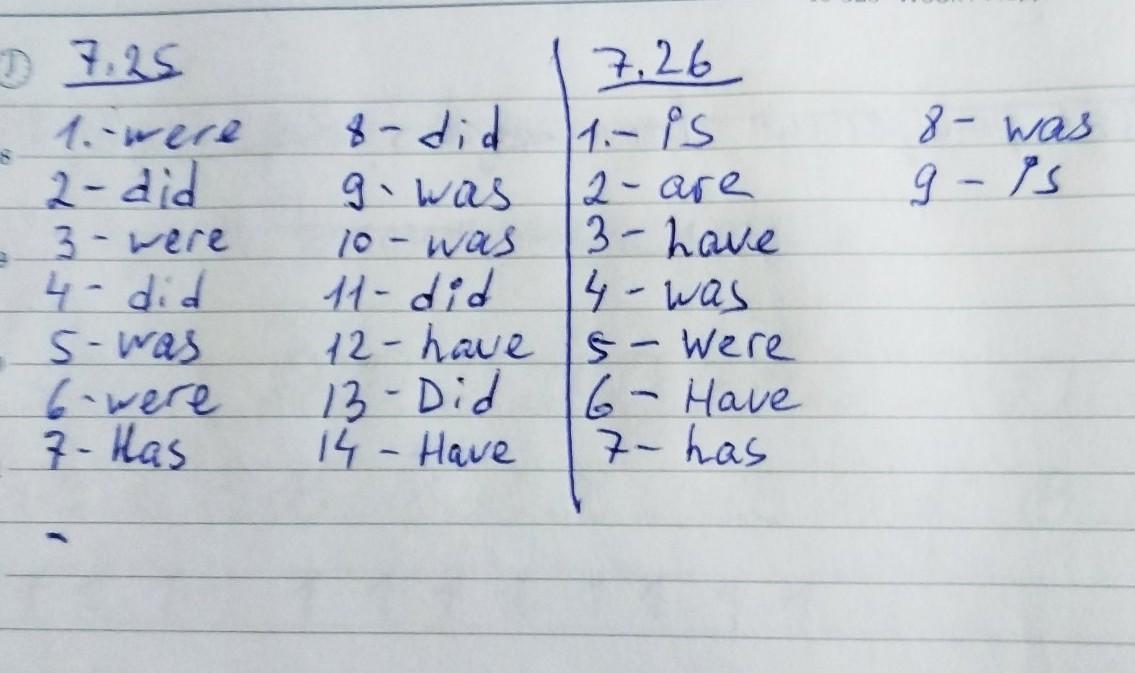 7.25 Put in was / were / did / have / has.