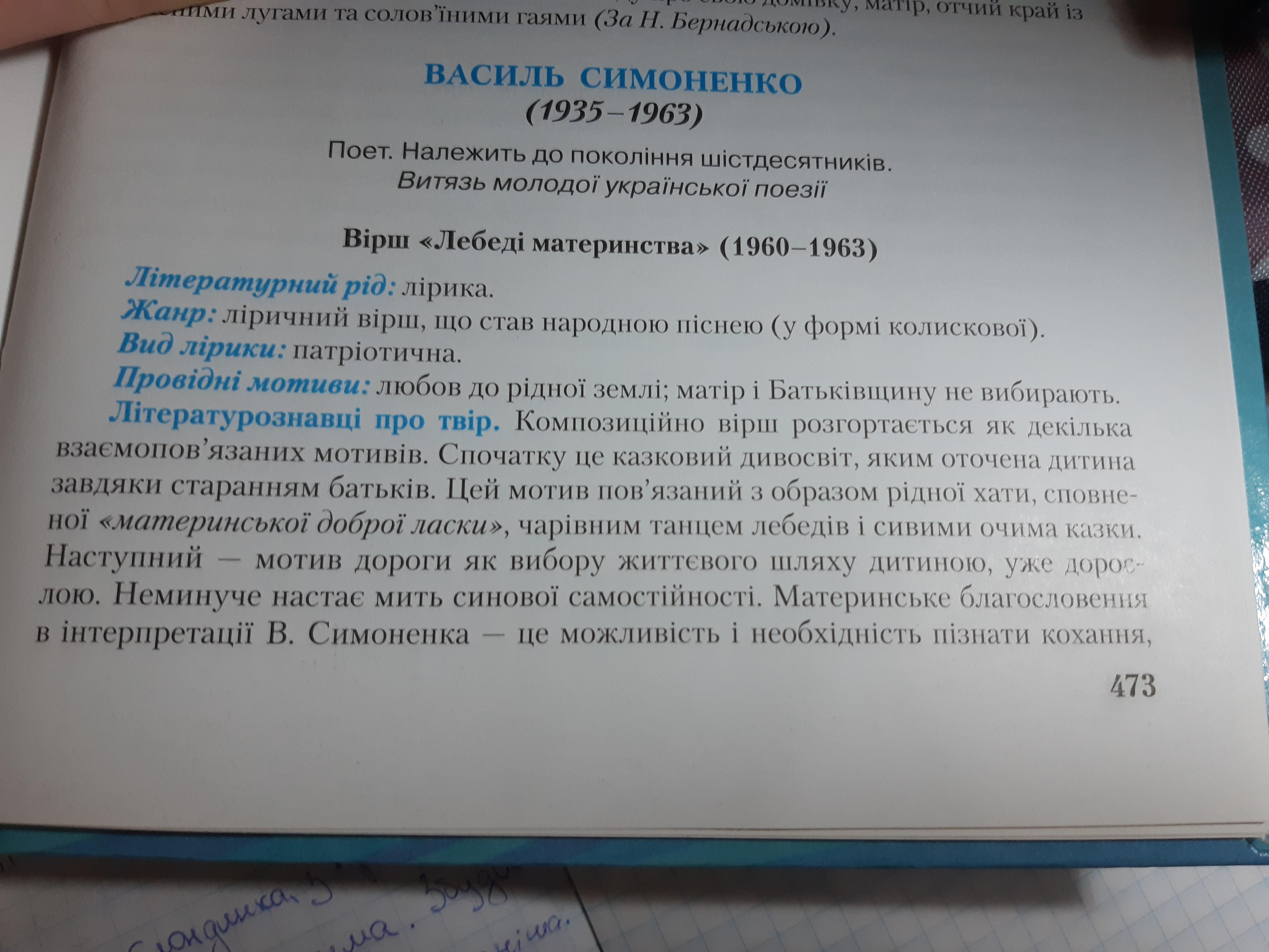 Рід Жанр вид лірики тема та ідея художні засоби метафори анафори й вид римування до вірша "Лебеді материнства"