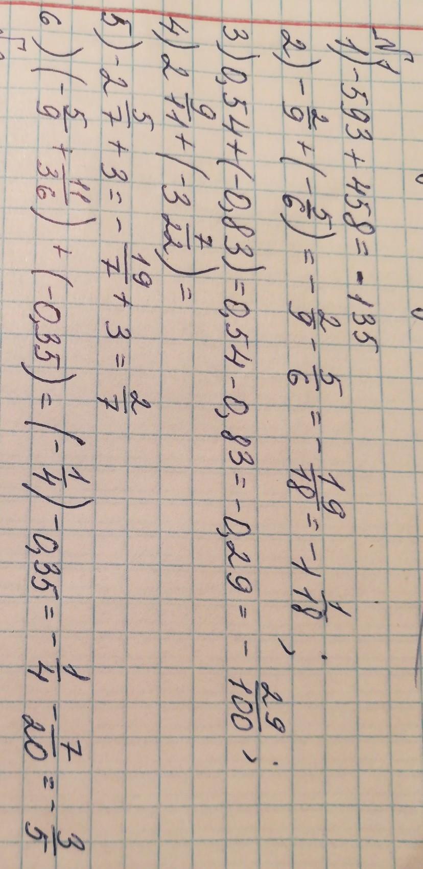 6) -20/36+11/36 - 0,35= -1/4 - 0,35= -0,25 - 0,35= - 0,6
