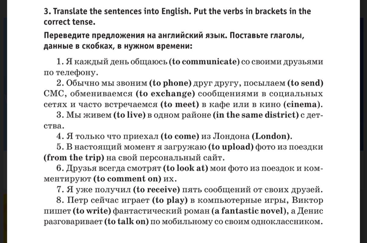 7. Peter is playing computer games now, Victor is writing a fantastic novel, and Dennis is talking on the mobile to his classmate.