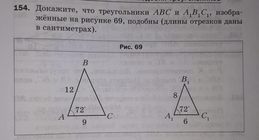 12/8 = 3/2 и 9/6 = 3/2 . Коэффициент подобия равен 3/2. Значит, ΔАВС подобен Δ А1В1С1.