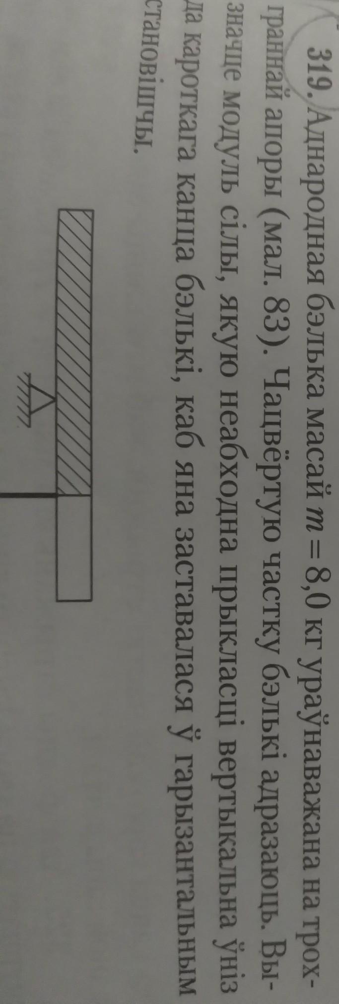 Балка массой 8 кг. Отрезали 2 кг весом P=mg=20 H.