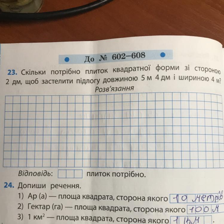2) 2×2= 4 (дм²) -застиляє 1 плитка,