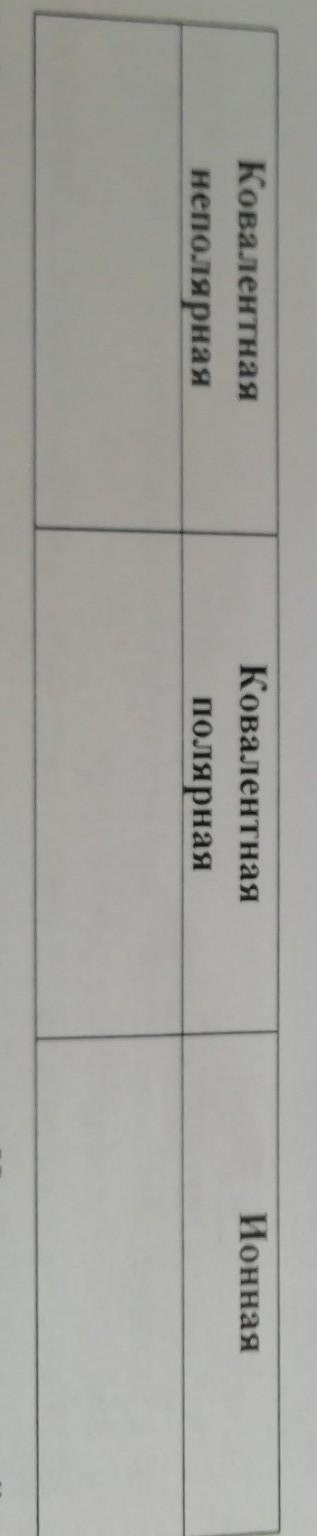7. Распределите в столбцы в соответствии с типом химической связи в этих