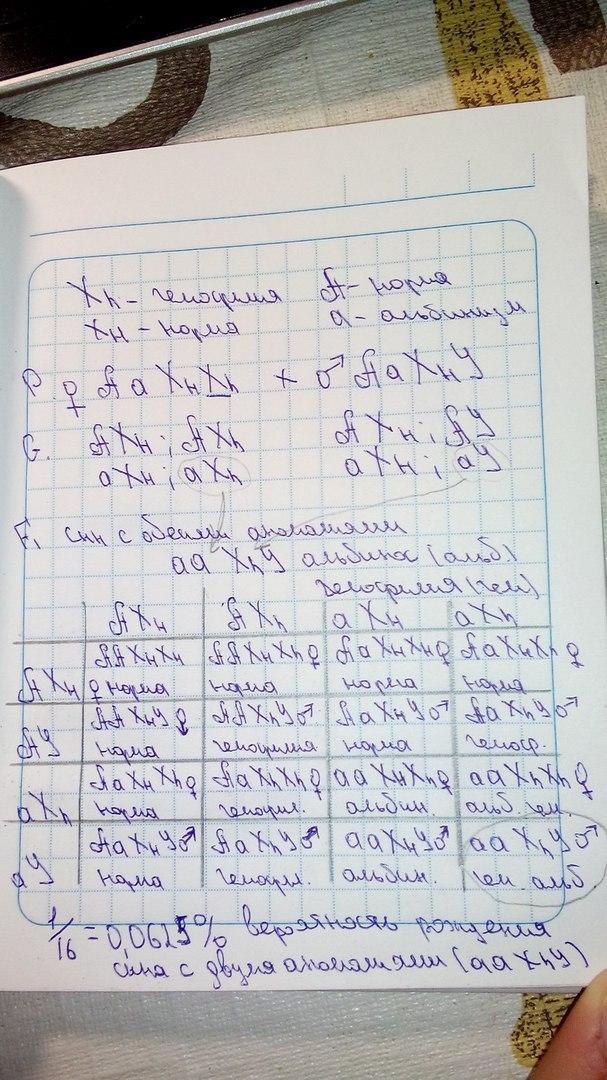 дети :ААХВХВ(зд), ААХВХв(зд) АаХВХВ(зд) АаХВХв(зд) ААХВУ(зд) ААХвУ (бол.гемоф) АаХВУ(зд) АаХвУ (бол. гем) АаХВХВ(зд) АаХВХв (зд) ааХВХВ( аль) ааХВХв(аль) АаХВУ(зд) АаХвУ(бол гем) ааХВУ (аль) ааХвУ (аль, бол гем)