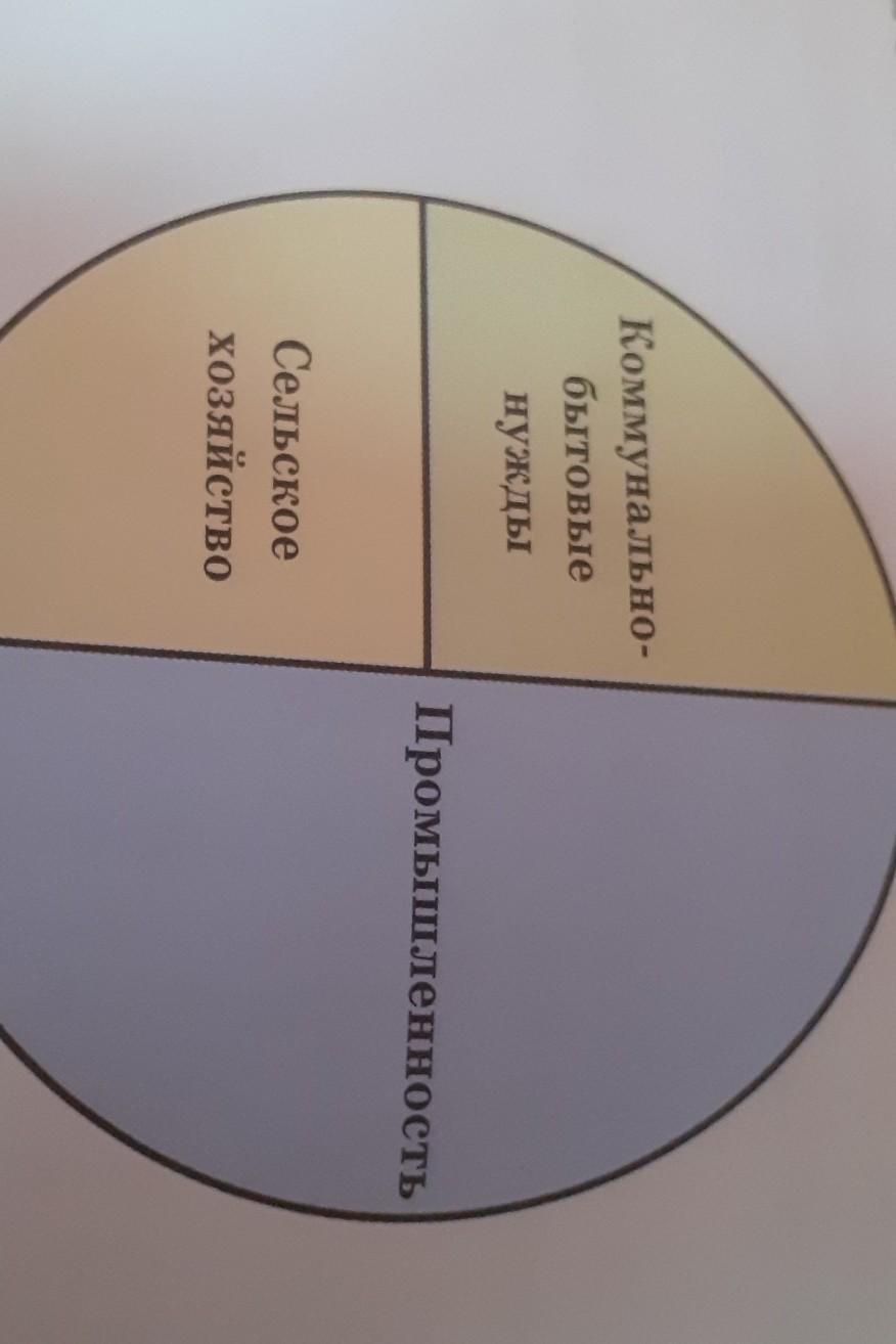 Определи по диаграмме и запиши в процентах на какие нужды была использована вода