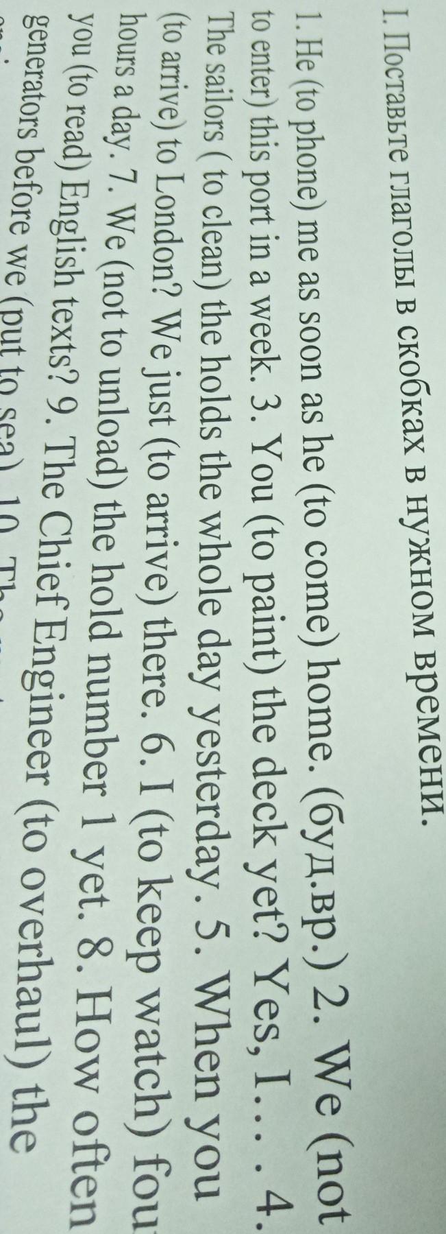 7 We haven't unloaded hold No 1 yet. (перед словом hold не должно быть артикля, так как после существительного есть числительное)