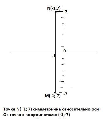 лежащая на прямой NM, параллельной оси 0y (перпендикулярной оси 0х) на расстоянии, равном y = 7 ед) с координатами: М(-1;-7).
