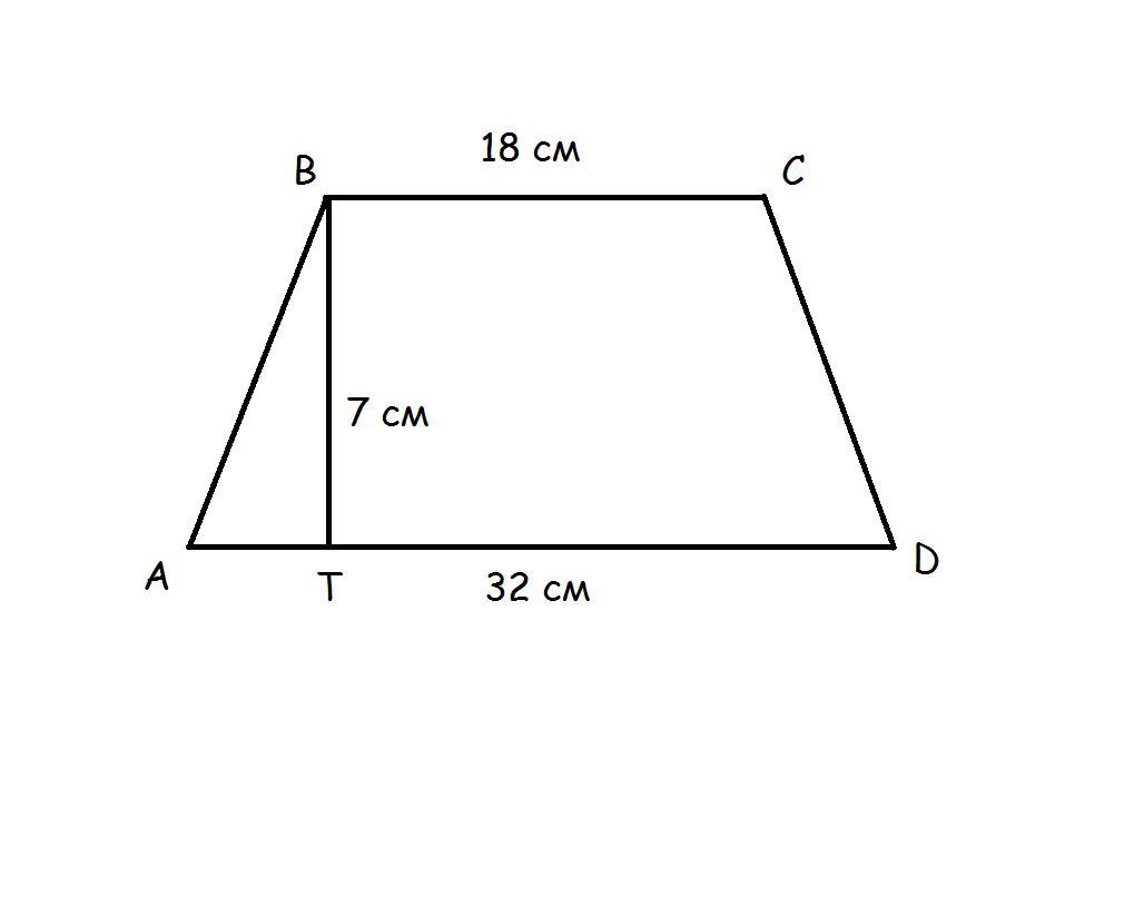 В равнобедренной трапеции основание равны 18 и 32см а высота 7 см. Найди площадь и периметр трапеции