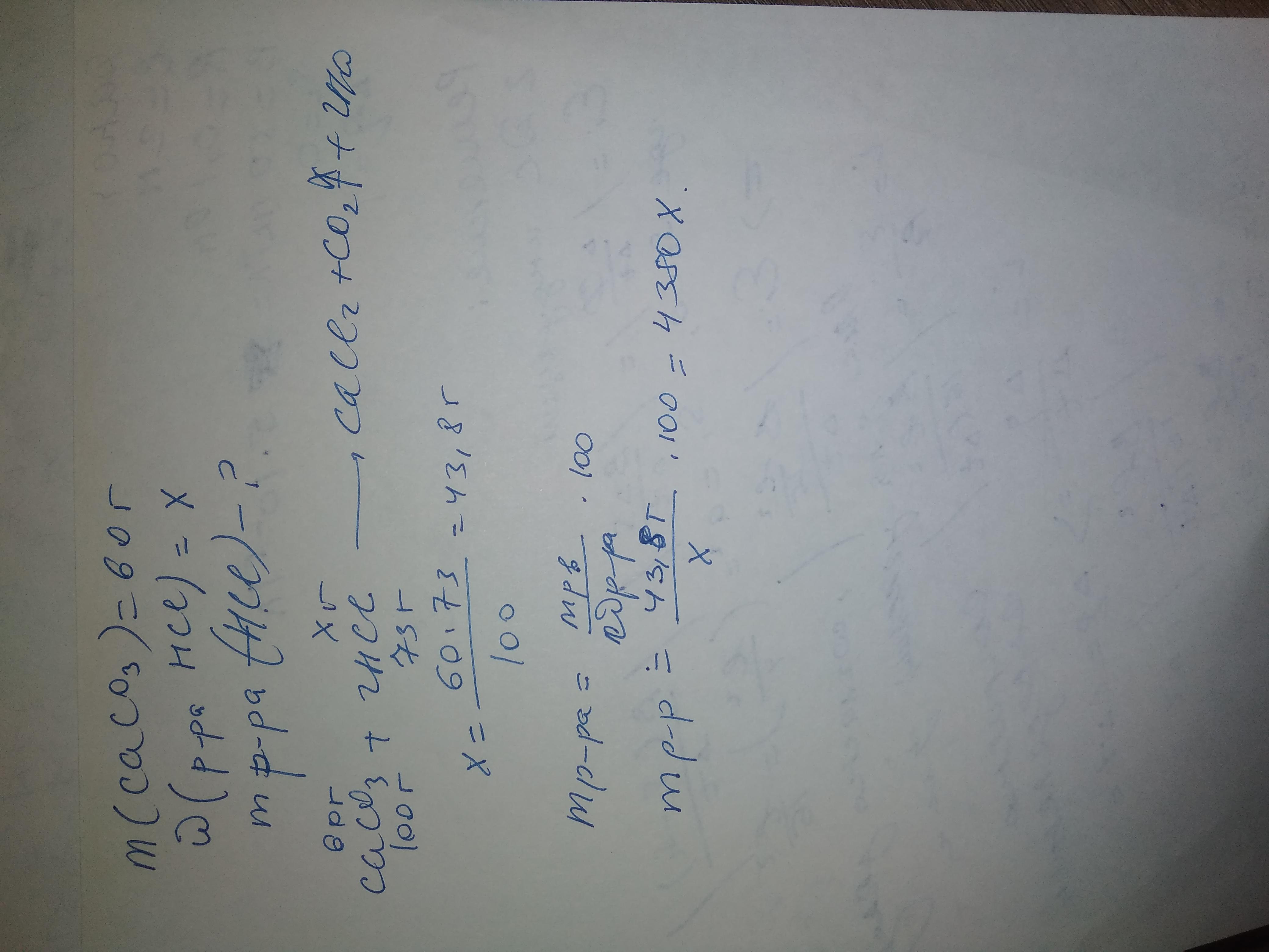 Какая масса раствора соляной кислоты потребуется, чтобы растворить 60г карбоната кальция?