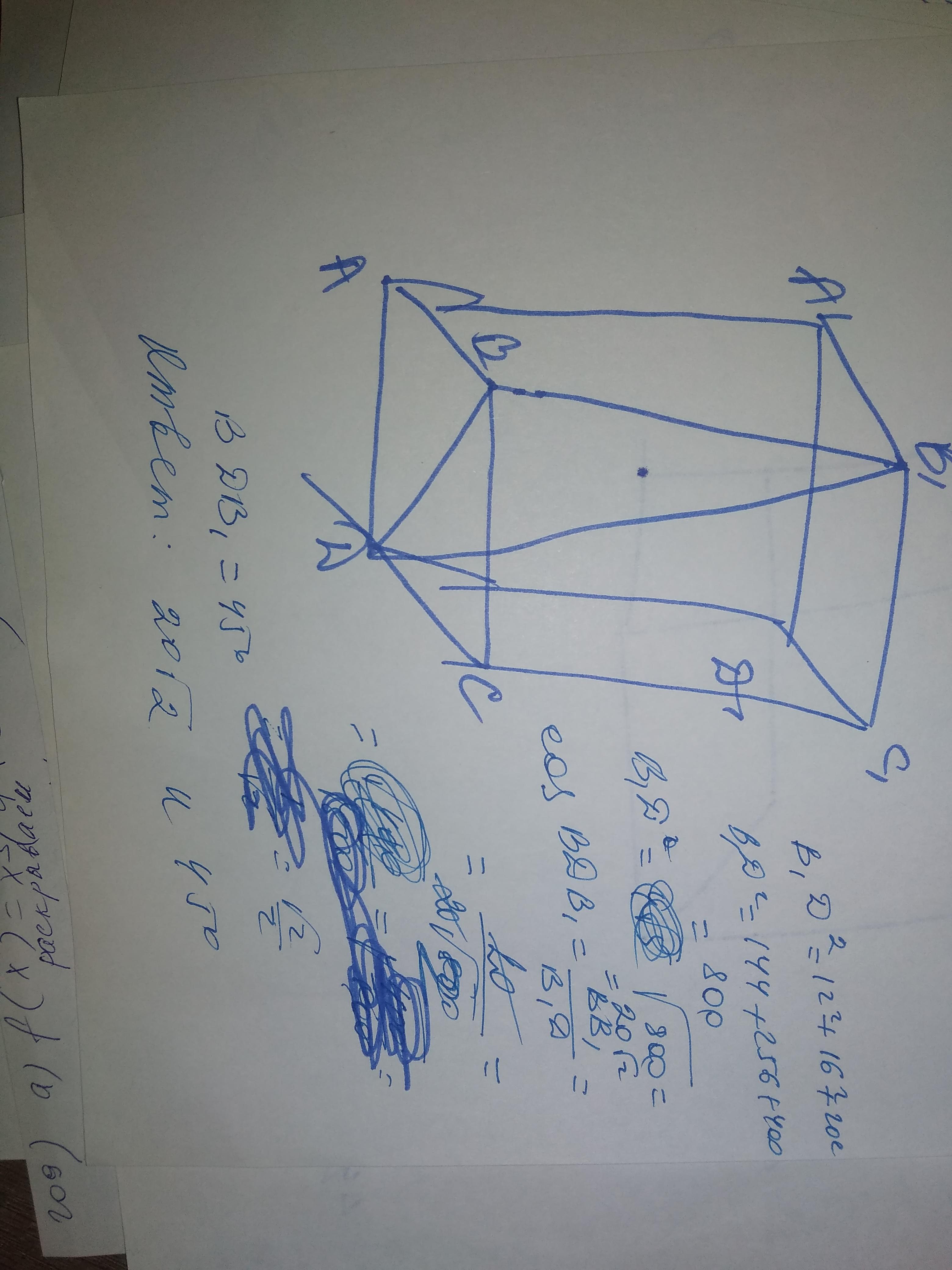 cos<BDB1= BB1/B1D=20/20√2=1/√2=√2/2